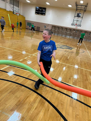 Given that Teddy loves gym and being on the go, it was a no-brainer to sign him up for the class. He really enjoyed it fall semester, so he's participating again this spring. It's also nice that it's long enough that we can sneak back to eat dinner as a family in peace, or get some alone time with AJ, etc. since we don't have to be present for the class.